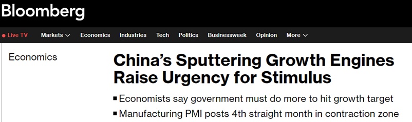 美国彭博社周一(9月2日)报道称,房地产市场继续拖累经济之际,中国剩余的增长引擎正显示出熄火的迹象,突显出政府采取干预举措以达成经济增长目标的紧迫性。