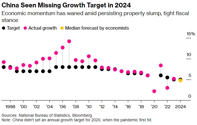 瑞银集团(UBS Group AG)和摩根大通(JPMorgan Chase & Co.)等银行的经济学家现在预计,中国将无法实现其经济增长目标。