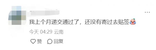 “我上个月递交通过了,还没有寄过去贴签。”