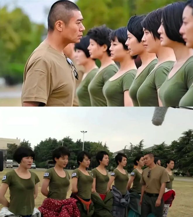 导演只需要拍摄她们的上半身,观众看到的画面就是一群英姿飒爽的特种兵女战士,完全感受不到她们在寒风中瑟瑟发抖的样子。