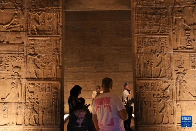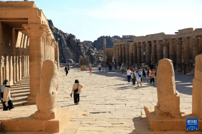 11月22日,游客在埃及阿斯旺省的菲莱神庙参观。