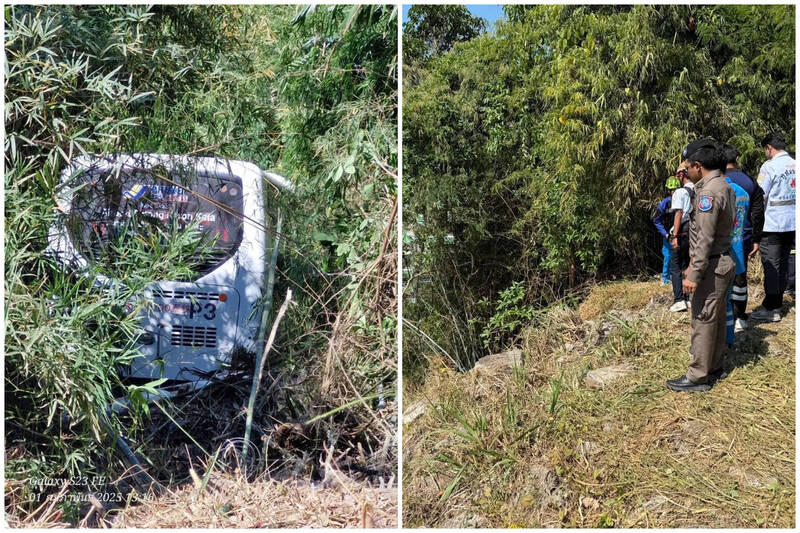综合泰媒报导,事故发生于1日下午,一辆旅游巴士自卡塔(Kata)海滩开往芭东(Patong)海边,行经卡伦山一处弯道时,疑因道路湿滑导致失控,整辆车冲破护栏,冲下15公尺深的山谷。