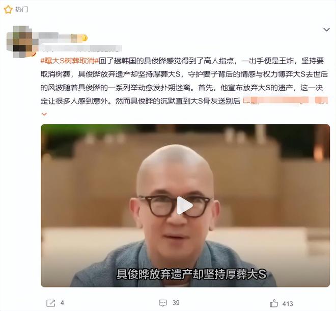 具俊晔信誓旦旦地说,遗产他可以不要,但大S必须得厚葬,听着还挺深情,像个情种。