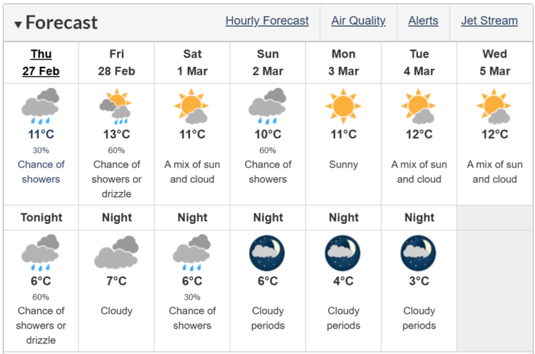 “就降水量而言,從周六晚開始的第壹個周末可能會比較潮濕,周壹則會逐漸減弱”,Fong 說,“雖然下周會有幹燥的趨勢,但除此之外,3 月份的總體信號可能會比正常情況更潮濕壹些。 天氣模式很難達成壹致”。
