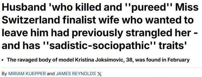 每日郵報:只因想分手,瑞士小姐總決賽選手被丈夫“殺害並磨成泥”