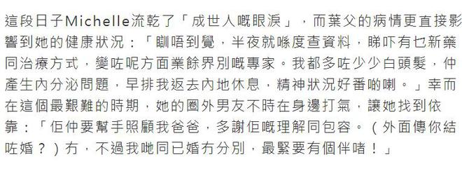 父亲确诊后,叶璇暂停所有工作,陪爸爸到香港就医。