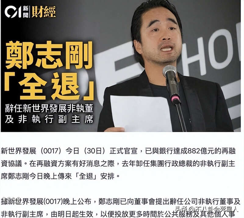 只有壹個鄭志剛算鄭家的頂梁,感情上比較專壹,可卻在6月也被“踢出”新世界,留下巨額債務,不知該如何堵這個窟窿。