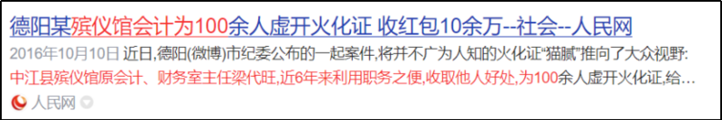 四川德阳一名殡仪馆的会计为100人虚开火化证,收红包10多万。