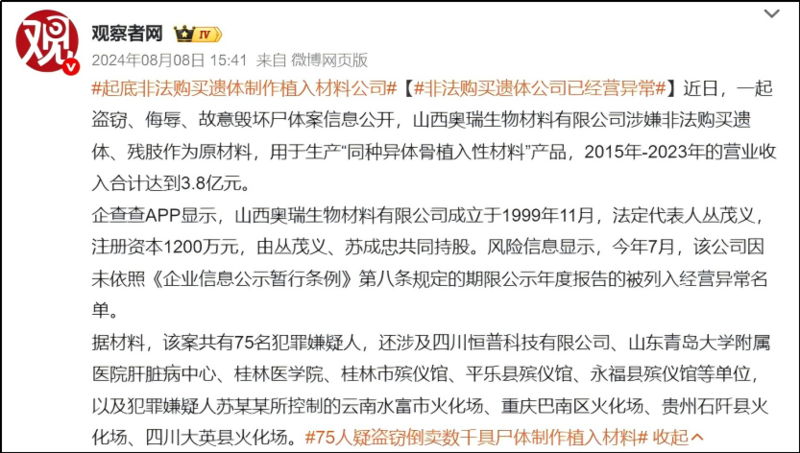 去年8月被爆出来多家医院和殡仪馆参与其中“倒卖遗体事件”,相信会有令人满意的处理后续。