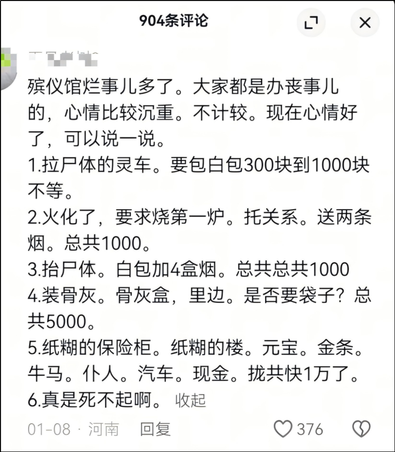 殡仪馆贪腐多严重? 网友:生不起 活不起 更死不起