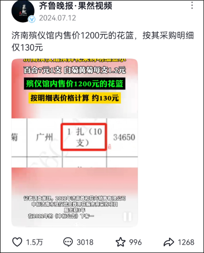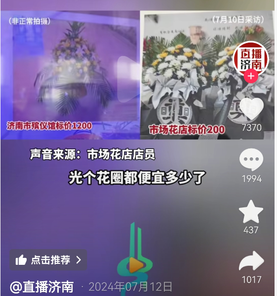 花圈贵了9倍地销。