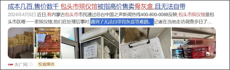 有的不让你自带骨灰盒,还卖给你比出厂价贵10倍的骨灰盒。