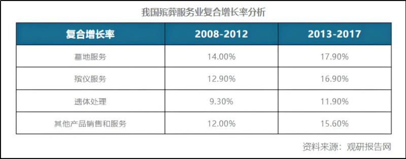 而墓地服务的增速更是一直遥遥领先。