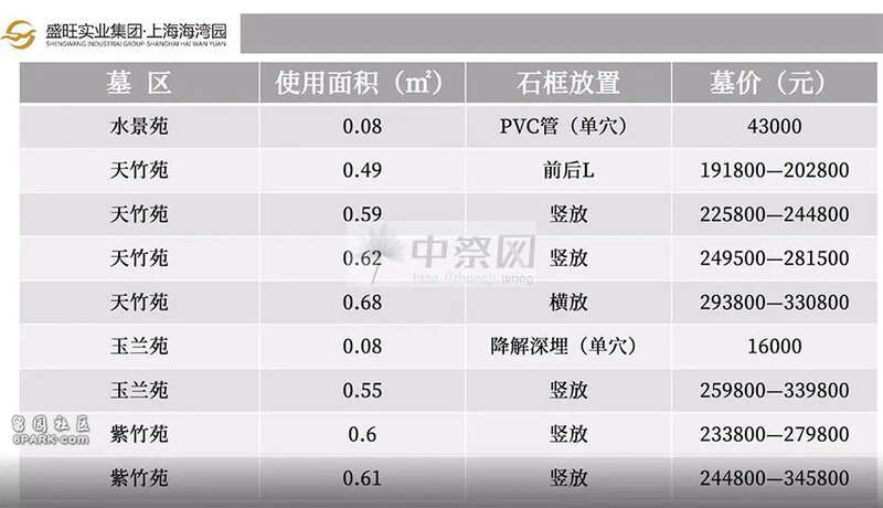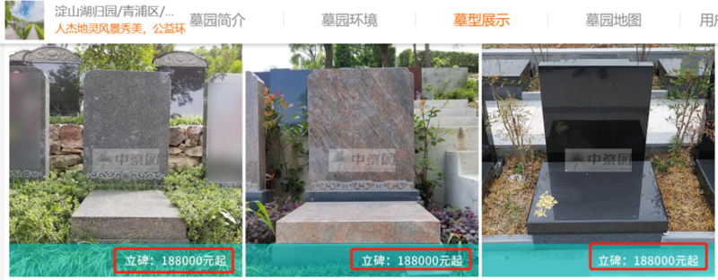 我查询了同期上海其它墓园的价格。