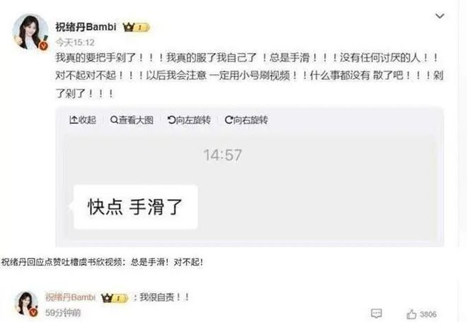 面对汹涌而来的舆论压力,祝绪丹在 12 小时内迅速做出回应,连续发文道歉。她用 “手滑到想剁手” 这样夸张的表述强调自己的失误绝非故意为之,还表示 “以后用小号刷视频”。然而,她的道歉并未平息这场风波,反而让事件进一步发酵。原点赞视频的播放量在短时间内激增 300%,更多的人开始关注视频中所涉及的虞书欣的负面话题。网友们对于她的道歉也出现了截然不同的看法,一部分粉丝选择相信她是真的手滑,纷纷在评论区留言安慰,力挺偶像;但更多的网友对此表示质疑,认为手滑的解释太过牵强,难以令人信服。