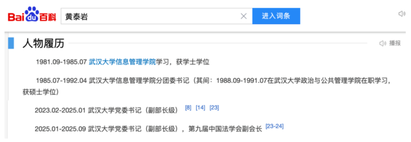 而继续查一下武汉大学原来的一把手,我们能发现,这位武汉大学的一把手,名叫黄泰岩,他是从1981年就在武汉大学学习,而后就一直在武汉大学工作到了现在——也就是说,这位一把手,已经在武汉大学待了40多年时间了。
