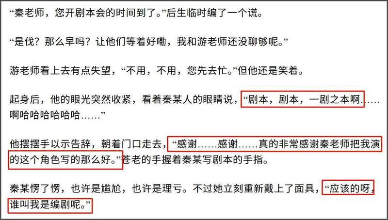 古二最新晒出的《编辑会议纪要》,开头王家卫还在谈人物讨论剧本,最后向秦雯暗示,如果这个角色“陈老师”(陈道明)来演就好了,但没想到秦雯拒绝了,说陈道明后面和靳东有个戏,暗示王家卫陈道明没档期。还说陈老师是努力把自己拗得很洋气的一个人,嘲讽陈道明实际很土气。