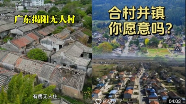 广东揭阳出现无人村,当局实施“合村并镇”。(图片来源:抖音截图)