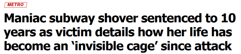 情绪激动的徐婉在受害者影响陈述中说道:“每次走进地铁站,我都会感到呼吸急促,心跳加速,双手颤抖,仿佛那次袭击或那一刻会再次发生。”