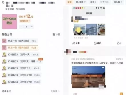 据了解,文章代发通常透过登入买家帐号操作,部分卖家可代发至微信朋友圈、小红书与抖音等多个平台。若要购买国外定位,价格为40元,并附赠两张实景照片;如需发九宫格,则需加购,每张10元,共计110元。不过客服提醒,“九宫格并不划算,真正精致的人喜欢少发几张,太多就刻意了”。