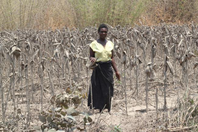 巴特謝巴·穆索萊站在她被毀的玉米地裡。