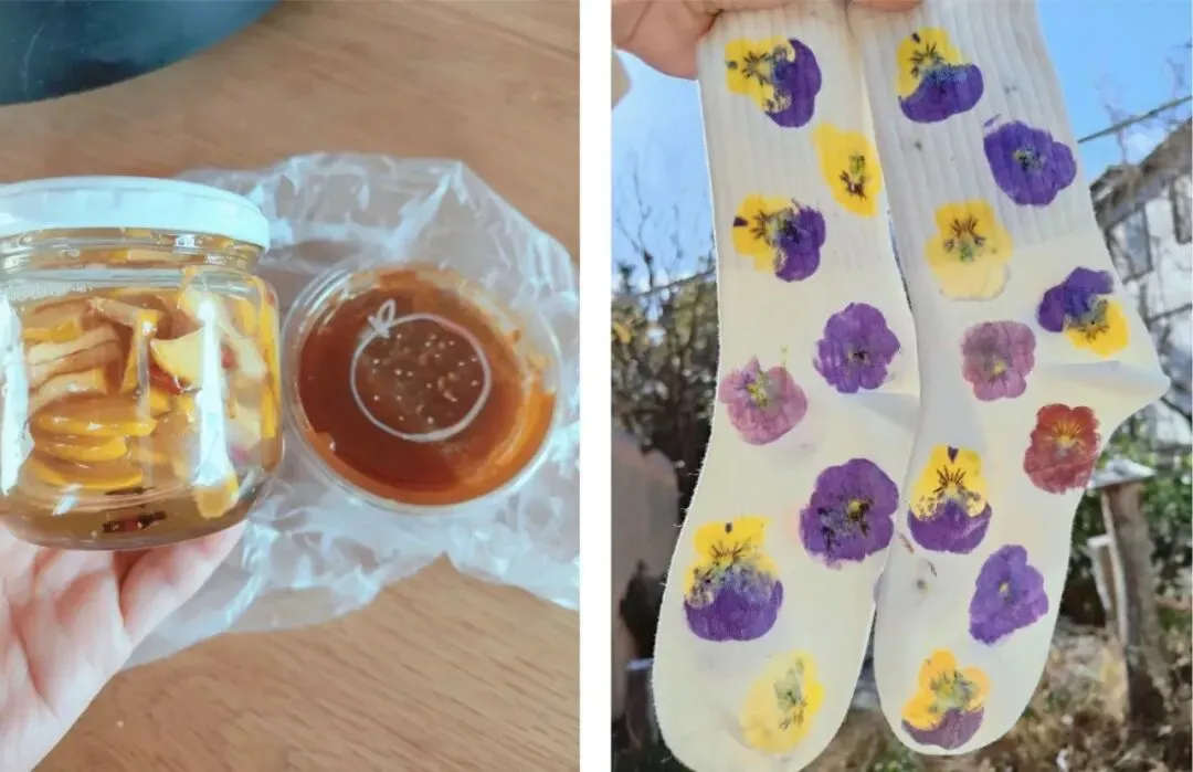 右:Kirara用自己种的花染袜子