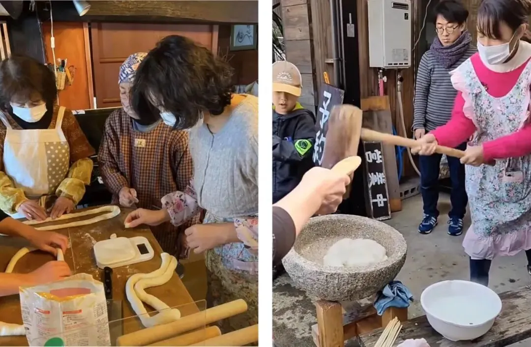 右:日本乡下的打年糕大会