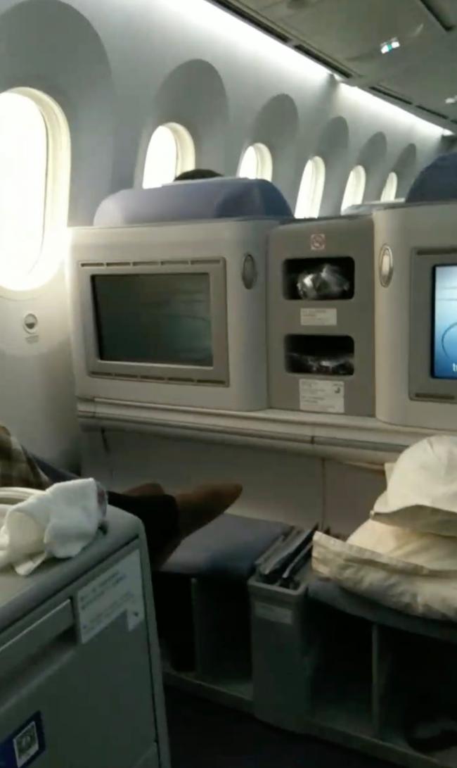 張爽出行時,保姆也坐頭等艙,圖系壹名保姆拍攝並發布的朋友圈視頻截圖。受訪者供圖