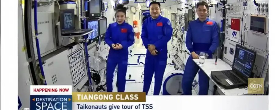 经德国之声查证,这是2021年12月9日中国“天宫课堂”第一课开讲时的场景,中央电视台中文国际频道(CCTV-4)也在YouTube直播了这一课的内容,网传图片呈现的画面约在55分22秒左右处出现。当时,据中国官媒介绍,神舟十三号乘组航天员王亚平、翟志刚和叶光富在空间站进行太空授课。中国环球电视网(CGTN)也用英文进行了直播,同样的画面出现在了约55分58秒左右。