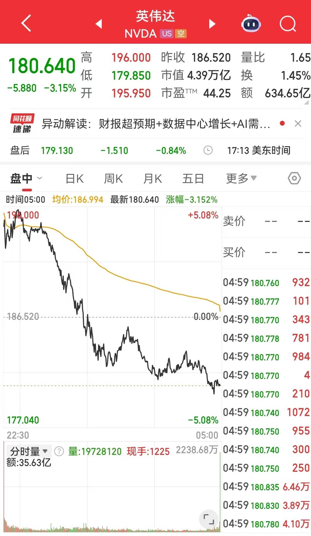 納指跌近500點!英偉達驚魂壹夜:漲5%轉跌3%!