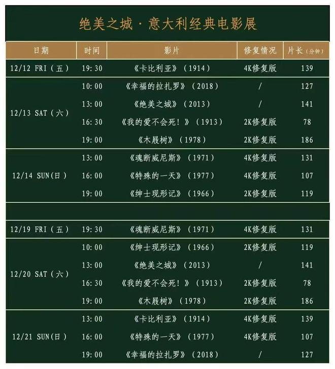 [电影] "绝美之城·意大利电影展"中午开票,百年经典全在了