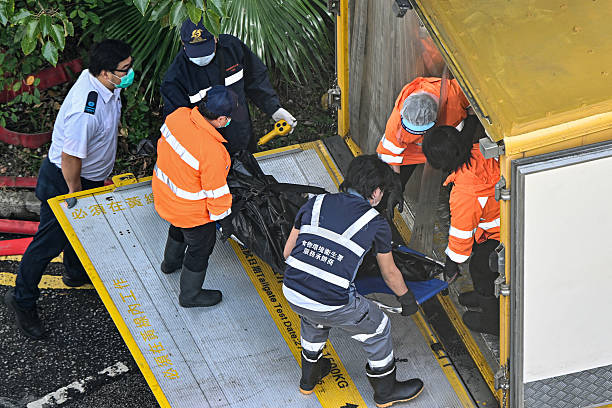 圖:大批港警穿防護服入宏福苑 抬出多具遺體