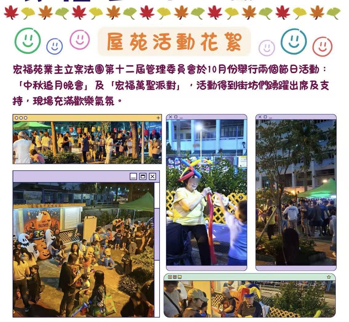 社區有各種日常活動,不少圍繞老人展開。過年時的千歲宴、面向70歲以上居民的長者點心宴;還有過興趣班,粵曲、氣功、社交舞班、歌唱聯誼等等。萬聖節夜晚,老人戴上彩色的小丑帽,壹旁立著充氣的南瓜和鬼。