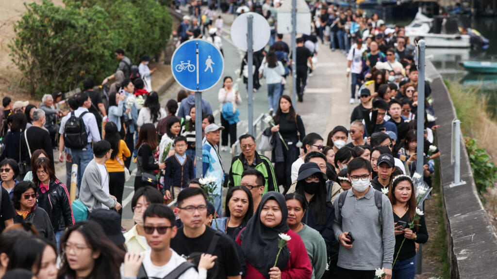 香港大埔區,排隊悼念宏福苑住宅樓火災遇難者的香港市民 2025年11月30日