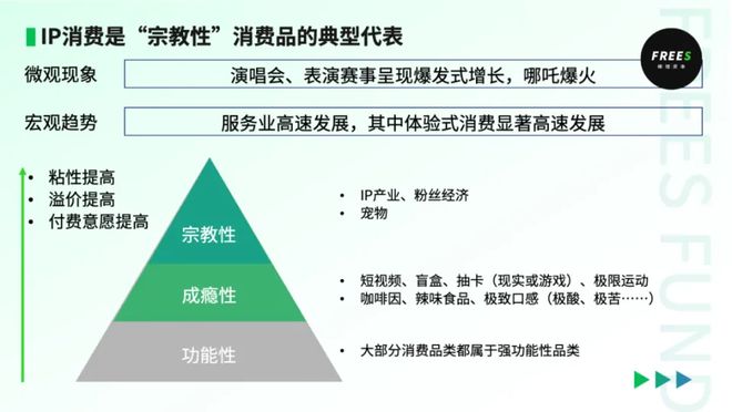 峰瑞资本的一份报告将消费品特性分为三层:功能性、成瘾性、宗教性。IP消费正是 “宗教性”消费品的典型代表。