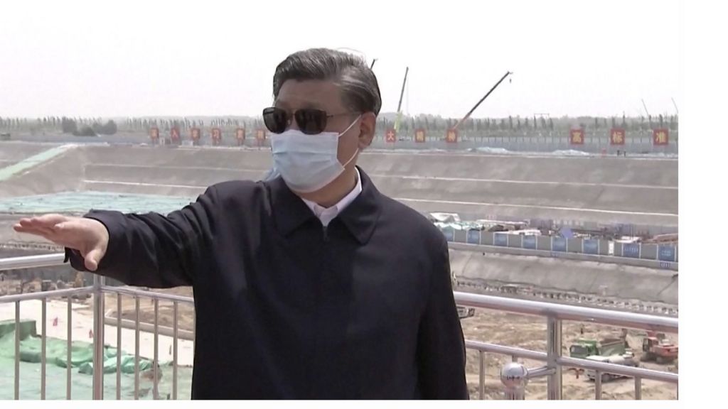图为习近平带著口罩和墨镜视察雄安(网络视频截图)