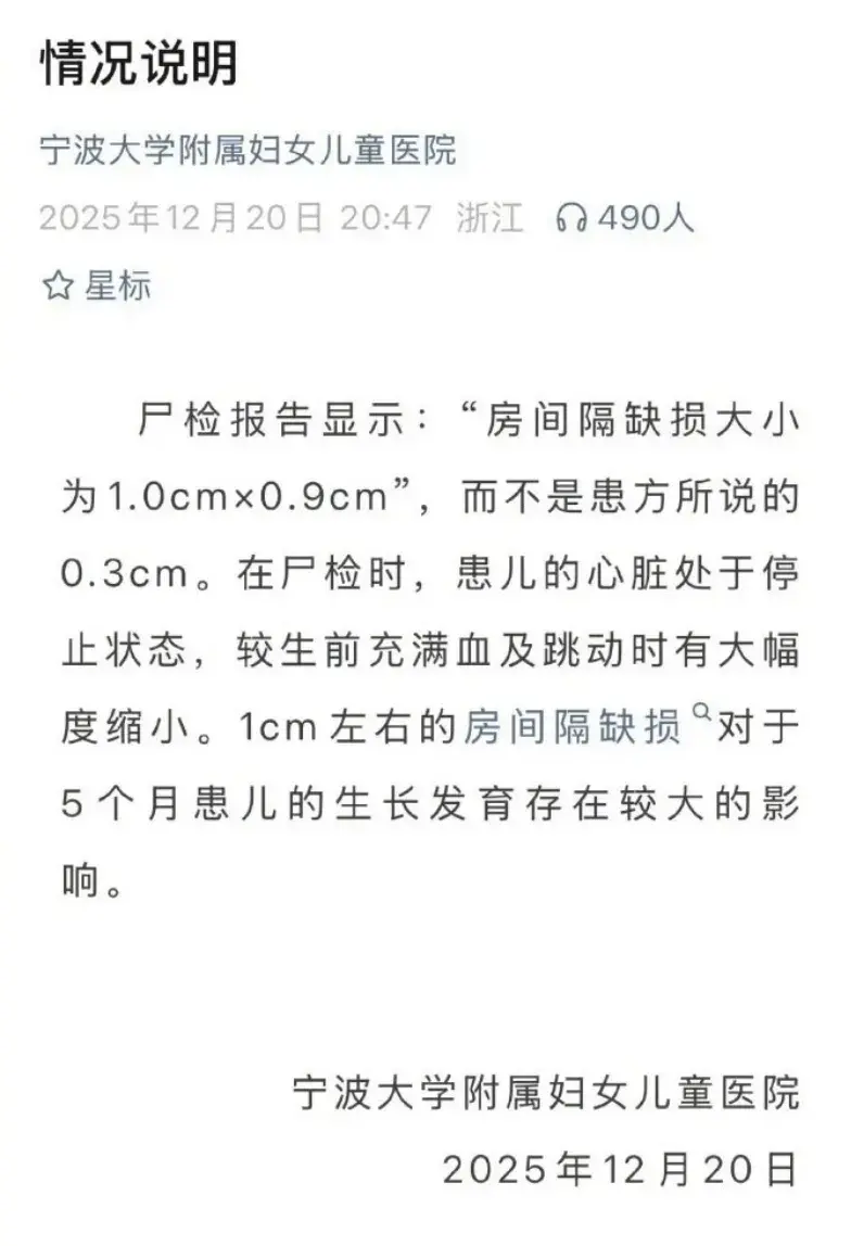 笔者还注意到,12月20日晚,宁波大学附属妇女儿童医院曾发布情况声明。随后不久,院方删除了上述情况说明,截至发稿没有新的说明发布。