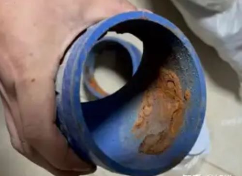 有業主上前查看,發現拆下的管道內壁明顯有銹蝕,有的還附著大量濕滑、有顏色的油漆狀物質。