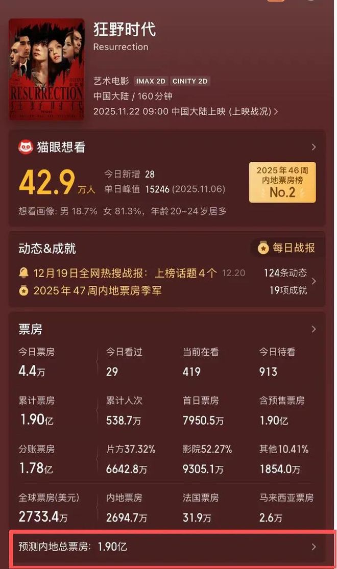 可誰也沒想到,僅僅肆年時間,這塊金字招牌就迎來了“滑鐵盧”。從57.7億的巔峰跌到1.9億的谷底,這樣的票房落差,實在讓人唏噓。當然,《狂野時代》的撲街,不能讓易烊千璽壹個人背鍋,影片本身的質量和口碑崩塌,才是最核心的原因。