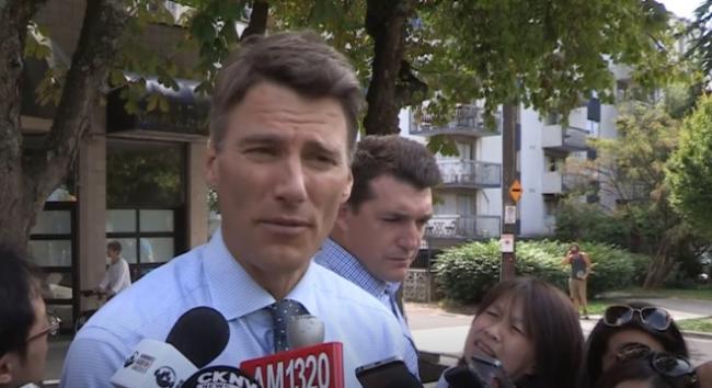 羅伯遜擔任溫哥華市長時回應外國買家稅爭議。圖源:Vancouver Sun