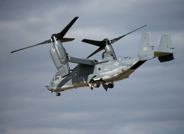 一架CV-22倾转旋翼机在2020年训练演习中执行任务。(gleb garanich/Reuters)