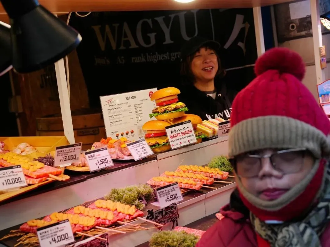 12月18日,在日本東京築地站附近,壹家店鋪的店員招攬生意。新華社記者賈浩成攝