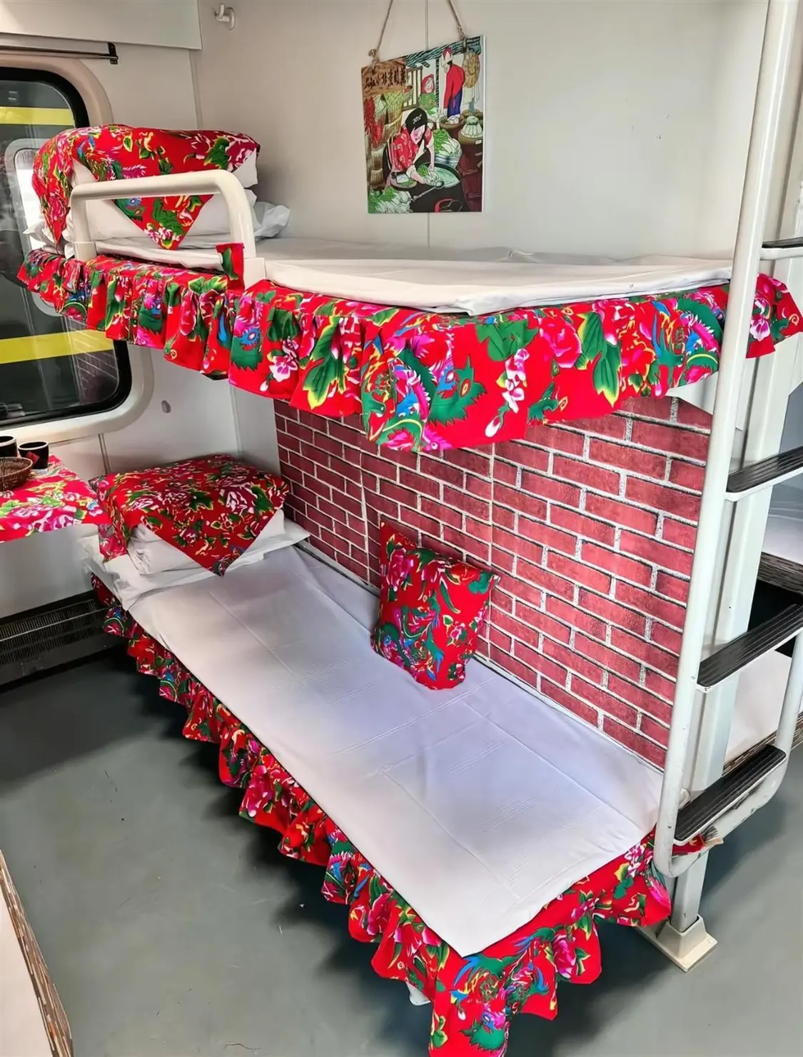 許多前往漠河旅游的乘客紛紛選擇乘坐該列車,他們拍攝的視頻顯示,列車部分臥鋪、桌子都換成大花,牆面貼上了紅磚的貼畫,窗戶也裝飾有窗花、小燈籠,置身其中,很有回到家的感覺。