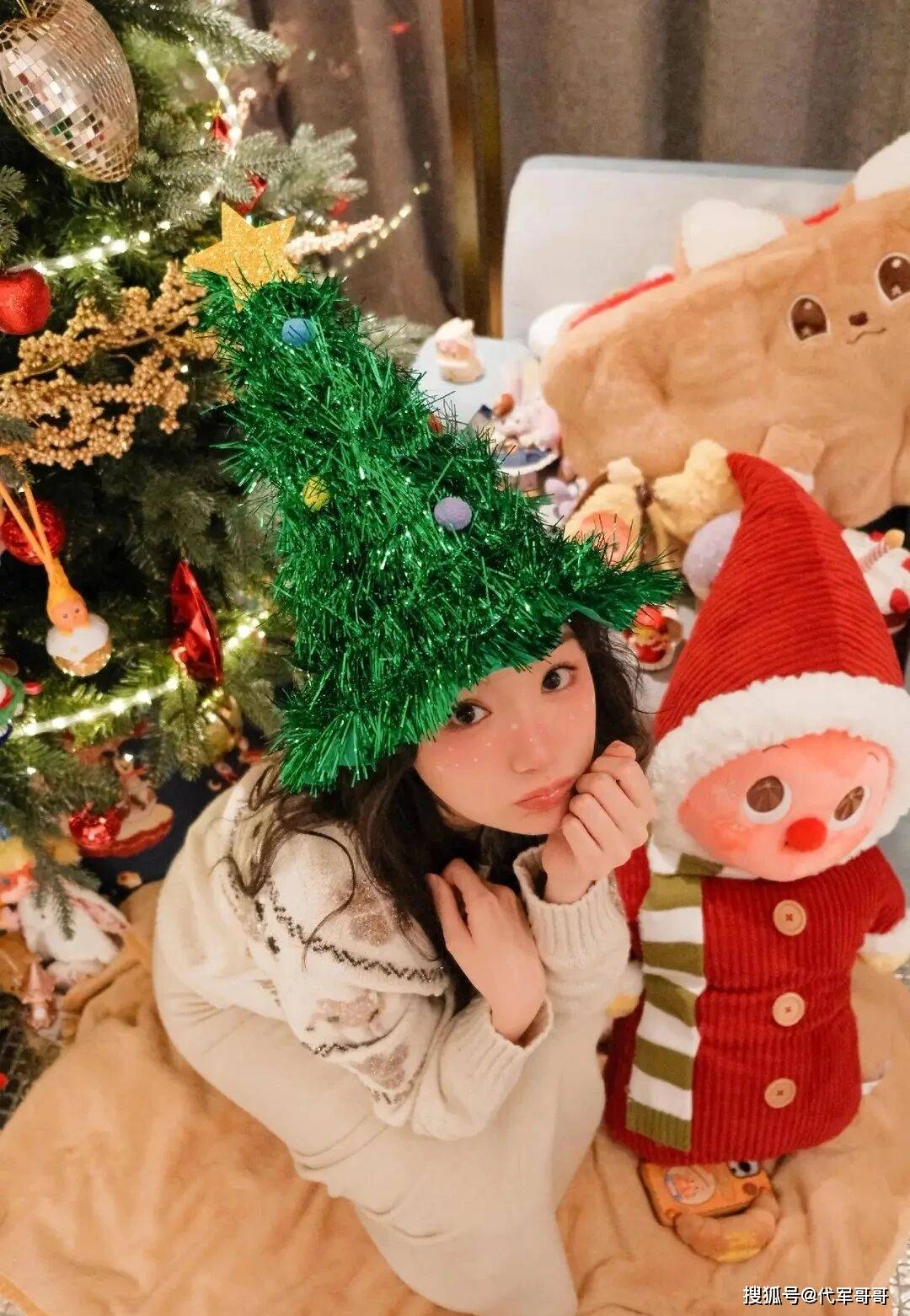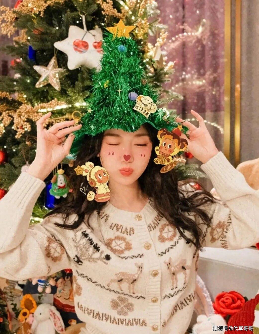 这组惊艳众人的圣诞美照,藏着满满的节日巧思与少女心事。毛晓彤身着一件软糯的米色麋鹿刺绣毛衣,搭配同色系浅粉长裙,柔软的面料与温暖的配色将她清甜的气质完美烘托,裙角的蕾丝花边随动作轻轻摇曳,尽显灵动俏皮。更吸睛的是她的造型细节,一头波浪齐肩粉发利落又阳光,搭配带有鹿角和鲜花装饰的发箍,瞬间化身圣诞小精灵;手中时而捧着红彤彤的苹果扮出略带委屈的小表情,时而捧着装饰着雪人与圣诞树的精美蛋糕甜笑,每一个神态都鲜活又可爱。背景里点缀着彩灯的圣诞树与星黛露布偶玩偶相映成趣,把节日氛围拉满的同时,也藏不住她满满的少女心。