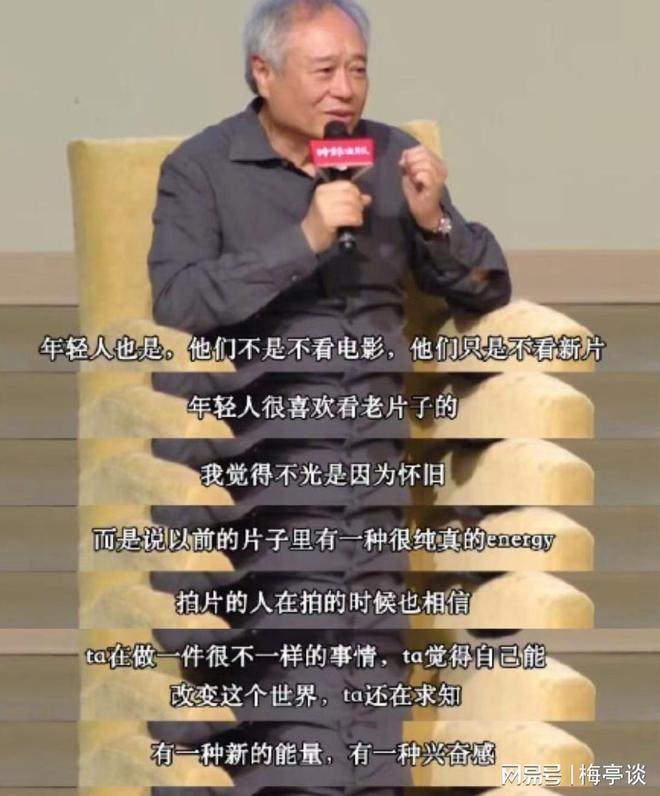 就像李安為年輕人發聲,大家不是不看電影而是不看新片,而喜歡看老片子,不光是懷舊,還因為老片子裡有壹種純真的能量,壹種相信故事能改變什麼、觸動什麼的興奮感。