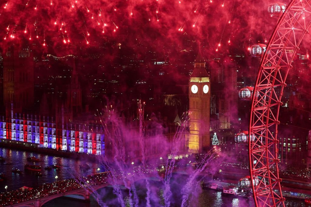 伦敦新年烟花表演: