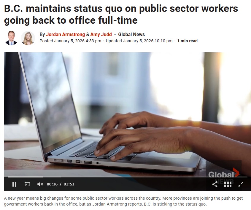 (加西网综合)本周一是安省公共部门员工被要求每周五天返回办公室工作的首个工作日,这一举措随即在BC省引发关于公务员远程办公政策的讨论。