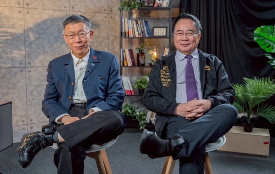 蔡正元和柯文哲同框翘脚,一起秀出"电子脚镣"