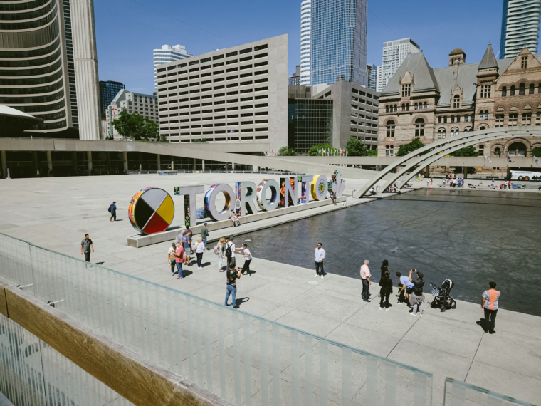 警方稱,下午 2 點左右,他們前往位於Queen Street West和Bay Street附近的內森·菲利普斯廣場的示威活動現場維持秩序。