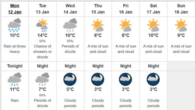 周三也是多云天气,不过有60%的概率出现毛毛雨或阵雨,气温开始降低。